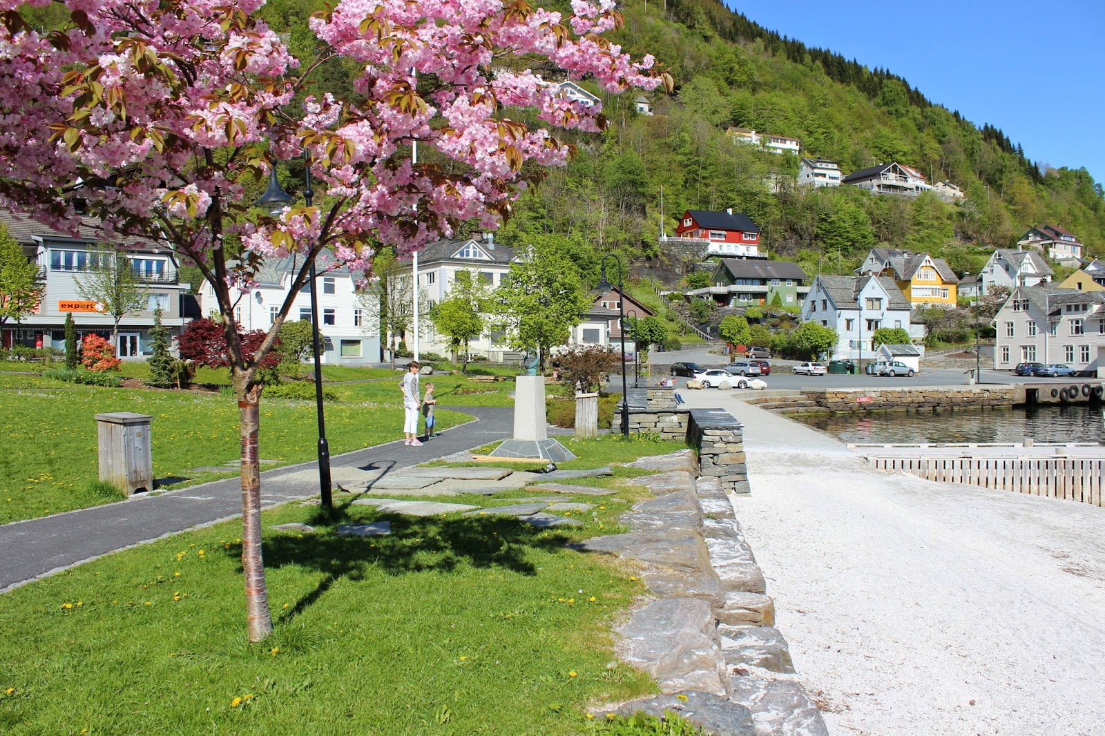 Természetesen kirándultunk. Napos idő, 15-17 fok. Gondoltuk, a fjord mentén elindulunk Norheimsund irányába, és jutunk ameddig jutunk. Ez Oystese lett, tehát majdnem ameddig terveztük. Sok-sok kép, és majd jön némelyikhez magyarázat is, valamikor...